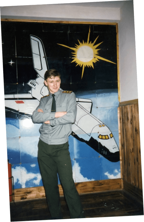Я начал думать, как хочу применить себя в дела. Тем более, будучи молодым ты не знаешь ничего, хоть и видишь, что мир многообразен. Определиться было сложно, потому что кроме военного направления я ничего в своей жизни не видел. Именно поэтому я поступил и поехал учиться в Санкт-Петербург в военно-космическую академию имени Можайского. Но хватило меня на военную карьеру только на 5 лет. Это интересный и по-своему трансформирующий опыт.