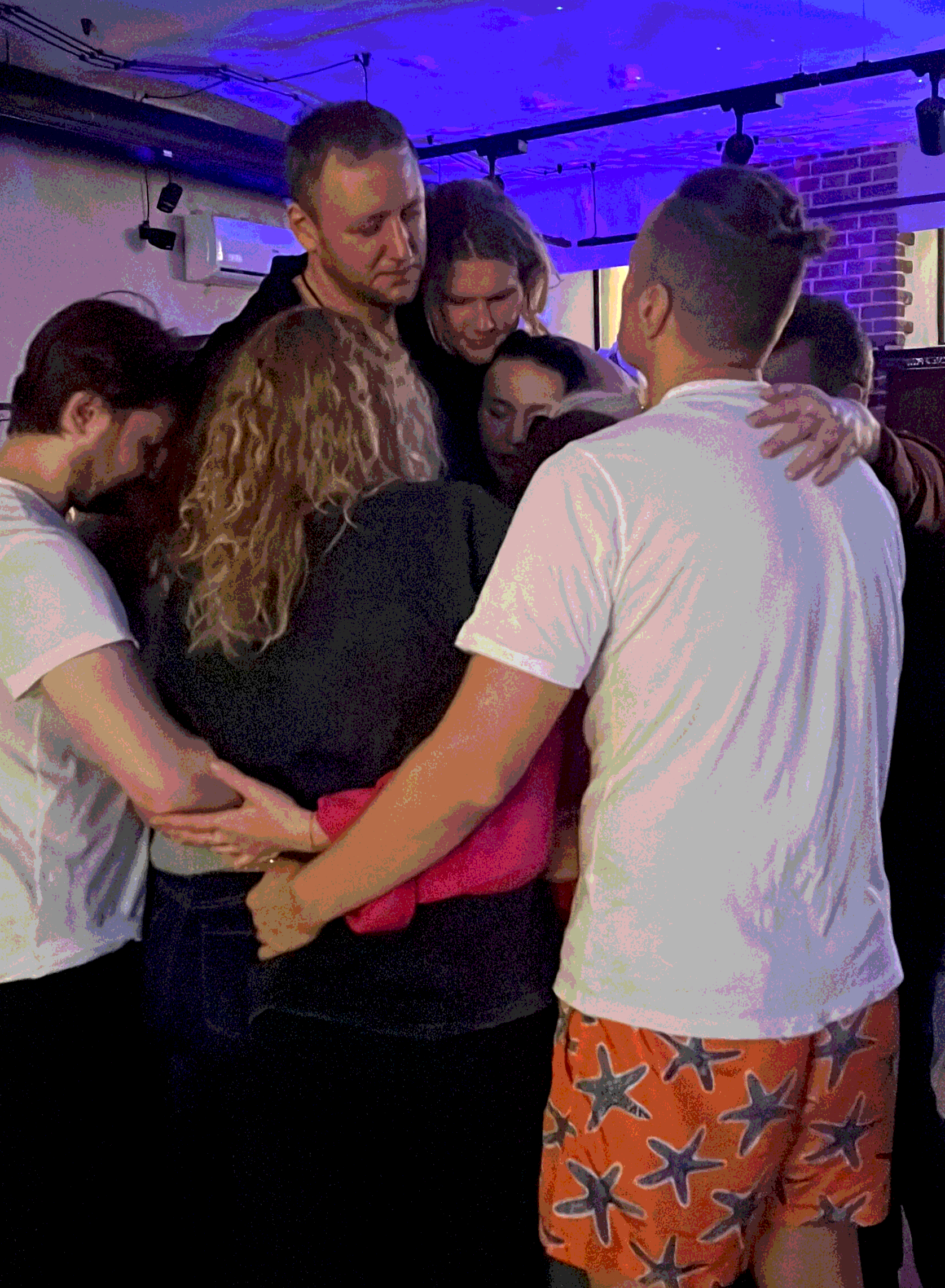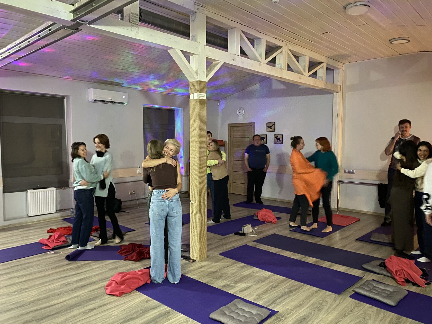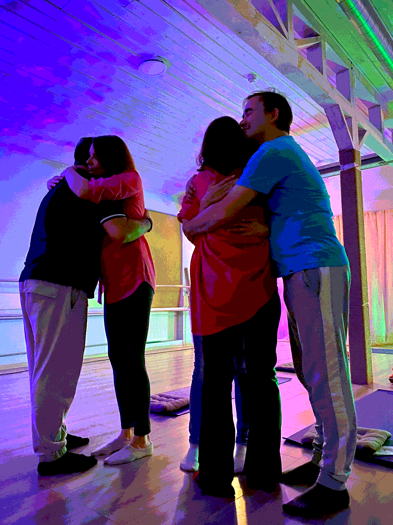 Единое объятие, ритуал единения, шеринг, социализация, благодарности.