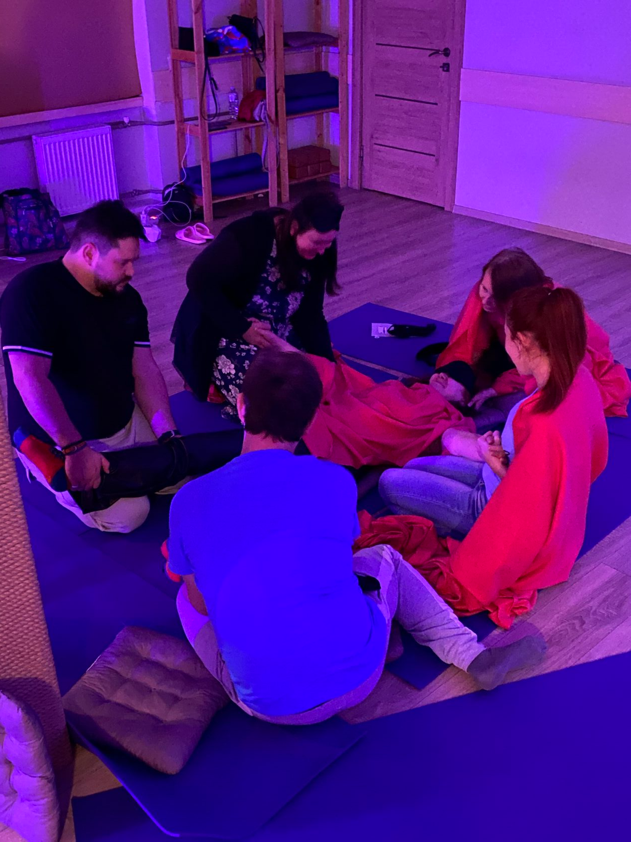 Погружение и объятия себя, массажные и обнимательные практики, баюканье и невесомость, медитация прямой поддержки и любви.