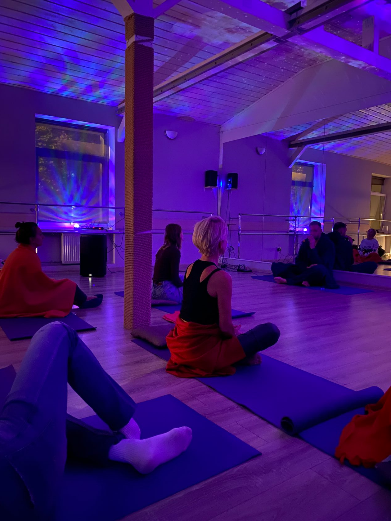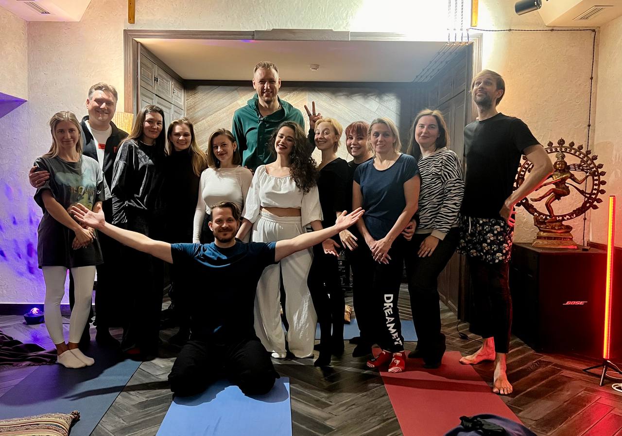 Вводная речь, шеринг намерений, медитация, знакомство, освобождение от мыслей, дыхательная практика, активация организма, танец и звучание.